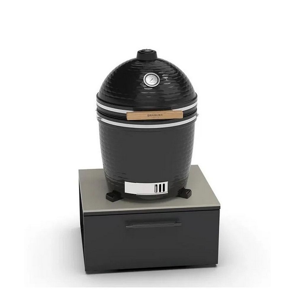 Das Brabura CT 80 Kamado-Modul ist eine stilvolle und funktionale Ergänzung für jede Outdoor-Küche. Das Modul besteht aus einer robusten Struktur aus doppelt lackiertem, verzinktem Stahl, das äußerst widerstandsfähig ist und allen Wetterbedingungen trotzt. Seine Platte ist aus Neolith gefertigt; dieses besondere, hitzbeständige und bruchfeste Material verfügt über eine edle, nicht-poröse Optik, so dass Keime nicht daran haften können. Dieser Umstand bewirkt, dass die Oberflächen aus Neolith außerordentlich hygienisch und leicht zu reinigen sind und somit ideal für die Zubereitung und Verarbeitung von Speisen im Freien.