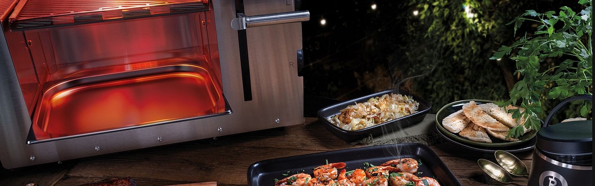 das bedeutet ein komplettes System rund um unseren legendären 800 Grad Oberhitzegrill. So kannst du extrem vielseitig die besten Steaks und Chops beefen, Pizzen und Flammkuchen, Gemüse schmoren, gratinieren und sogar Desserts zubereiten. Ach ja - und bei uns gibt es regelmäßig tolles neues Zubehör - willkommen beim echten Original aus Günzburg in Schwaben! Der Beefer One PRO ist ein weltweiter Bestseller. Der Beefer arbeitet ausschließlich mit Oberhitze und erreicht hierbei für handelsübliche Grillgeräte bisher ungekannte Temperaturen von ca. 800°C. Dies wird ermöglicht durch einen keramischen Gas-Hochleistungsbrenner. Neben der kurzen Garzeit, welche eine exakte Bestimmung des Gargrades ermöglicht, ist insbesondere das durch die reine Oberhitze ausbleibende Verbrennen heruntertropfenden Fleischsaftes ein enormer Vorzug des Beefer®. In der Gastroschale aufgefangen lassen sich aus dem so gewonnenen Saft herrliche Soßen bereiten.