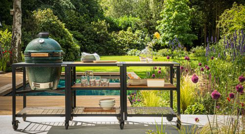 Das Outdoorküchen-Modul Big Green Egg Set (hier das Modell Large) von Big Green Egg zeichnet sich unter anderem durch seine schicke Optik aus. Dadurch lassen sich die Outdoorküchen-Möbel auf einfache Art und Weise in eine vielleicht schon bestehende Einrichtung integrieren. Den Möglichkeiten, mit dieser Outdoorküche unter freiem Himmel leckere Gerichte zuzubereiten, sind keine Grenzen gesetzt. Pizza backen, Fische räuchern, mit der Wok-Pfanne asiatische Speisen kochen, Steak braten ... und alles mit genügend Raum, damit nötige Dinge gleich zur Hand sind.