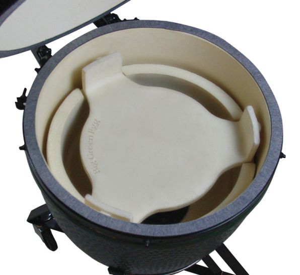 Die spezielle Form des ConvEGGtors ermöglicht eine gute Luftzirkulation und eine hervorragende Wärme- leitung. Die indirekte Wärme, die durch diesen keramischen Hitzeschild entsteht, verwandelt Ihr EGG in einen vollwertigen Outdoor-Ofen. Ideal für Low & Slow Cooking, wobei die Zutaten langsam und auf niedriger Temperatur gegart werden. Der ConvEGGtor ist eines der beliebtesten Zubehörteile des Big Green Egg, weil er die Möglichkeiten Ihres EGGs um ein Vielfaches erweitert.