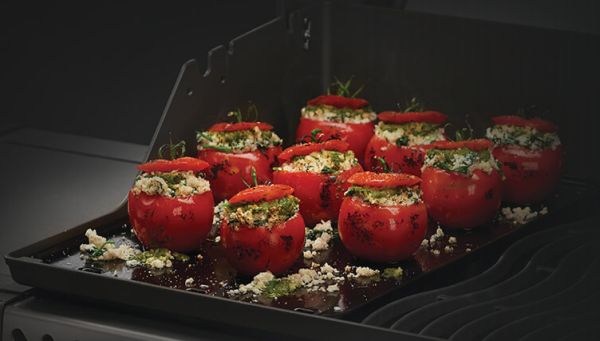 Dank der Wendeplatte für die Serie Rogue® 425 können Sie auf Ihrem Grill nun Frühstück zubereiten. Sie können Zwiebeln karamellisieren, Speck anbraten, perfekte Kartoffeln zubereiten und noch viel mehr! Ersetzen Sie mit dieser Wendeplatte die Grillroste oder setzen Sie die Platte direkt darauf. Das Gusseisen ist mit einer Porzellanbeschichtung versehen und sorgt für exzellente Hitzespeicherung unf für hohe Wärmeleitfähigkeit. Die große, wendbare Oberfläche von ca. 29,5 x 45 cm verfügt über eine glatte Oberfläche, auf der Eierspeisen, Gemüse, Pfannkuchen oder Fisch zubereitet werden können; für das Grillen von Steaks, Bratwürstchen und anderen Leckereien eignet sich die geriffelte Seite der Grillplatte. Die Rillen bewirken, dass das Grillgut nicht direkt auf der Platte aufliegt und dadurch Röstaromen ebenso wie Brandings entstehen.