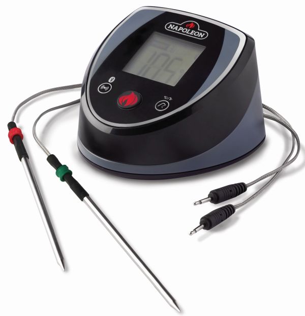 Grillen Sie das perfekte Steak oder den perfekten Braten noch einfacher mit dem Napoleon ACCU-PROBE™ Bluetooth Thermometer mit bis zu vier Temperaturfühlern (Sonden). Das Thermometer funktioniert mit iPhone und Android Handys und gibt ein Signal, wenn das Grillgut die perfekte Temperatur erreicht hat. Es ermöglicht punktgenaues Messen der Kerntemperatur Ihrer Gerichte. Die magnetische Befestigungsmöglichkeit sorgt dafür, dass das Thermometer sich nicht bewegt. Mit der anpassungsfähigen Programmauswahl grillen Sie Steaks und Braten genauso wie Sie möchten. Das Napoleon ACCU-PROBE™ Bluetooth Thermometer wird mit zwei Temperaturfühlern (Sonden) geliefert.