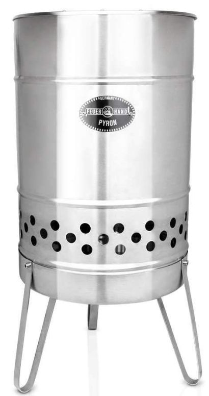 Die besondere Konstruktion mit dem ausgefeilten Luftzufuhrsystem der Pyron Feuertonne ermöglicht dank Kamineffekt und Holzvergaserprinzip eine effektive und nahezu rauchfreie Verbrennung. Dies ist für den Genuss von Stockbrot, Marshmallows oder Würstchen am offenen Feuer besonders von Vorteil. Auf dem Kohlerost kann das Feuerholz einfach platziert werden, und auch Nachlegen ist so jederzeit möglich. Die leicht zu entleerende Ascheschale fängt Brennrückstände zuverlässig auf.