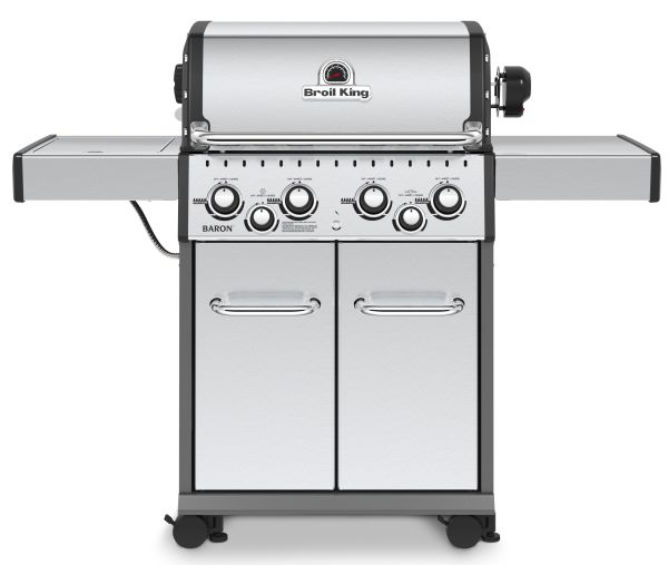 Der Baron™ S490 verfügt über eine tolle Ausstattung: Vier leistungsstarke Dual Tube Edel-stahlbrenner mit insgesamt 12,4 kW, das patentierte Flav-R-Wave™ Verdampfungssystem, das für ein köstliches Grillaroma sorgt, sowie ein Seitenkocher mit 2,7 kW machen das Grillen damit zum puren Vergnügen. Auf dem Seitenkocher kann man Beilagen zubereiten oder auch warmhalten. Dank der gusseisernen Grillroste wird die Hitze im Grill lange gespeichert. Der Spießbratenbrenner mit 4,4 kW zaubert Grillköstlichkeiten wie einen Braten oder Hähnchen kross und knusprig. Die Seitenablagen mit praktischen Zubehörhaken lassen sich platzsparend abklappen. Ein durchdachtes und praktisches Detail sind auch die höhenverstellbaren Rollen, die einen schrägen bzw. unebenen Untergrund ausgleichen können. Gehäuse, Bedienteil, Seitenablagen und Deckel (doppelwandig, mit Seitenteilem aus Alumini- umguss) sind aus Edelstahl gefertigt.