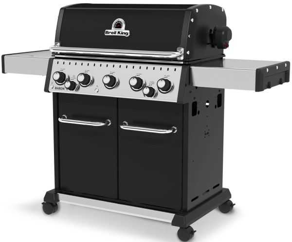 Die Baron™-Serie bietet sowohl Stärke als auch Leistung in unterschiedlicher Größe für den täglichen Gebrauch. Das Modell 590 Black verfügt über massive 5 Dual Tube™ Edelstahl-Stabbrenner mit einer Leistung von insgesamt 15,5 kW; so können Sie Ihr Grillgut schnell scharf anbraten. Gemeinsam mit den 5 matt-emaillierte Gussrosten sorgen Brenner für lang anhaltende, gleichmäßige Hitzeverteilung auf dem Grill. Mit dem Spießbratenbrenner lassen sich leckere Braten oder krosse Hähnchen ganz einfach zubereiten. Der Spießbratenbrenner mit 4,4 kW und der stabile Drehspieß mit robusten Gabeln sorgen dabei für sicheren Halt und gleichmäßiges Braten. Die Seitenkochplatte mit 2,7 kW ermöglicht es, Saucen zu kochen, Beilagen herzustellen oder auch Gerichte warmzuhalten. Die großzügige Grillfläche von 80 x 44 cm bietet genügend Platz, um auch auf größeren Grillfesten alle Gäste bestens zu versorgen. Die Fettauffangschale ist für eine einfache Reinigung von vorne zugänglich. Das in den Deckel integrierte Deluxe Acc-Temp™ Thermometer gibt Ihnen zuverlässig die Temperatur des Grills an. Bedienteil, Deckelgriff und Seitenablagen sind aus Edelstahl gefertigt.