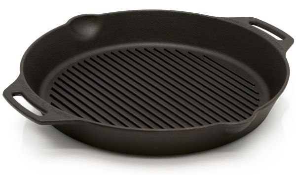 Die Petromax Grill-Feuerpfannen aus Gusseisen sind für das Zubereiten von Fleisch, Gemüse und Co. mit dem besonderen Grillaroma ideal, da sich die Hitze in Gusseisen gleichmäßig verteilt und lange gespeichert wird. Die Rillen am Pfannenboden geben dem Bratgut nicht nur das typische Grillmuster, sondern ermöglichen auch besonders fettarmes und gesundes Braten. Dank vorbehandelter Oberfläche (seasoned finish) sind die robusten, langlebigen Pfannen sofort einsatzbereit. Die Grill-Feuerpfannen sind sowohl für die Verwendung im Freien auf Lagerfeuer, Grill und Co. als auch drinnen für alle Herdarten sowie für den Backofen geeignet. Die Pfannen sind in zwei Größen und jeweils zwei Ausführungen erhältlich – mit klassischem Pfannenstiel und Griff oder mit zwei Henkeln.