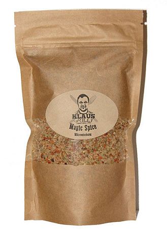 Klaus Magic Spice  - von Klaus persönlich kreiert, bekannt vom Youtubekanal “Klaus grillt” - ein leckeres Gewürz für fast alles … zum Verfeinern von Steaks, Buletten, Eiern, selbst die Butterstulle kann man damit aufpeppen! Wie alle Produkte der Gewürzmanufaktur sind natürlich auch die Produkte von Klaus ohne Zusatzstoffe oder Allergene. Nach Geschmack zum Würzen benutzen.