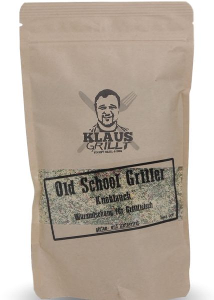 Old School Griller Knoblauch Rub ist eine leckere Gewürzmischung von "Klaus grillt" mit einer großen Portion Knoblauch, die ganz besonders Schweinefleisch ein tolles Aroma verleiht. Die leckere Würzmischung eignet sich natürlich auch als Flüssigmarinade; mit Wasser gut verrühren und das Grillgut über Nacht an einem kühlen Ort darin einlegen. Empfohlen werden ca. 40 g in 100 ml Wasser pro Kilo Fleisch. Solange mit dem Fleisch mischen, bis das Wasser aufgenommen wurde.