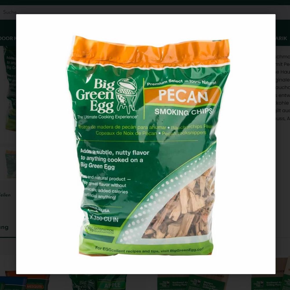 Die Technik des Räucherns verleiht dem EGGen noch mal eine ganz eigene Dimension. Wer diesen rauchigen, leichten Holzgeschmack einmal gekostet hat, möchte nichts anderes mehr. Wenn Sie etwa Fisch oder auch Geflügel ein feines, leckeres Aroma geben möchten, nutzen Sie Pecan Holzchips beim Räuchern. Wenn Sie Geflügel damit räuchern, erhalten Huhn, Gans und Co. eine wunderbar goldbraune Haut. Jeder Big Green Egg-Chef hat seinen eigenen Stil. Mit den originalen Holzchips können Sie Ihren Gerichten ein einzigartiges, charakteristisches Raucharoma verleihen. Sie können die lang oder kurz in Wasser eingeweichten Holzchips entweder unter die Holzkohle mischen oder eine Handvoll über die Holzkohle streuen. Oder Sie machen beides: reine Geschmackssache. Das gilt natürlich für jede von Ihnen ausgewählte Sorte.