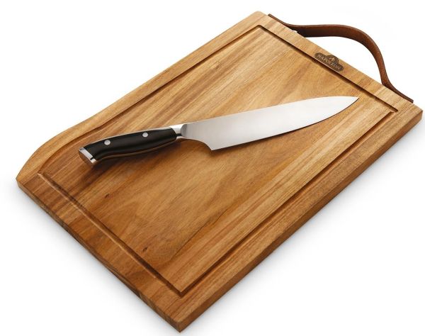 Das Napoleon®-Schneidebrett aus hochwertigem Akazienholz ist rundum mit einer Tropfkante für saubere und schnelle Lebensmittelzubereitung ausgestattet, damit der Saft, der aus den geschnittenen Lebensmitteln austritt, gleich abließen kann. Das Brett kann an seinem praktischem Ledergriff aufgehängt und ganz problemlos gereinigt werden. Das Chefkochmesser aus rostfreiem Stahl ist rasiermesserscharf geschliffen und zerteilt alles schnell und sauber egal ob Obst oder Gemüse, Fisch oder Fleisch ... Gemeinsam mit dem Schneidebrett ein äußerst praktisches und formschönes Duo für Grill und Küche.