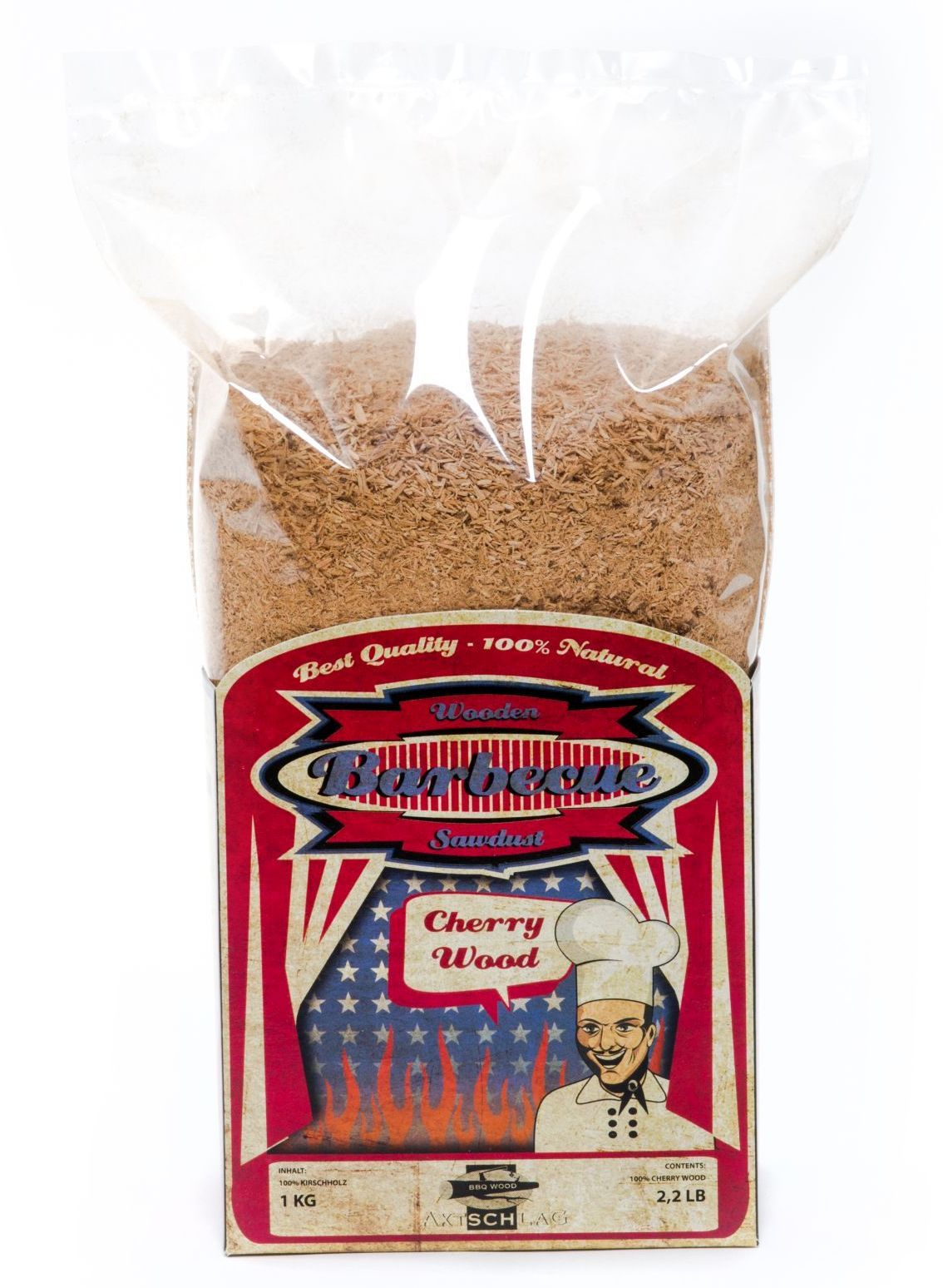 Axtschlag Sawdust ist ganz besonders geeignet für das hochwertige Aromatisieren des Grillguts in Gas- und Elektrogrills. Durch die extra feine Körnung glimmen die Späne selbständig und benötigen keine ständige Hitzezufuhr. Das Räuchermehl mit der Körnung 0 bis 4 mm ist zu 100 % sortenrein und ohne sonstige Fremdbestandteile; man kann es bei allen Grill- und Räuchergeräten anwenden. Die Sorte Kirschholz steht für besonders feinen Rauch.