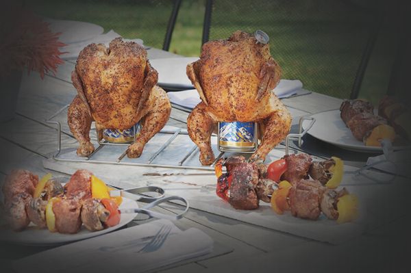 • 1 Edelstahl 2-fach-Bierdosenhähnchen-Halter