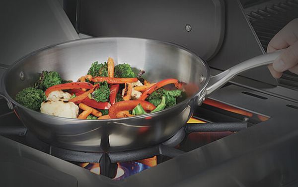 Dieser Edelstahl-Wok mit ca. 30,5 cm Durchmesser und dem langem Griff ist das ideale Zubehör zum Kochen auf dem Grill, eignet sich aber auch dank seines flachen Bodens für Herd oder Backofen sowie Induktionsgeräte. Durch die Beschichtung haften Speisen nicht an.