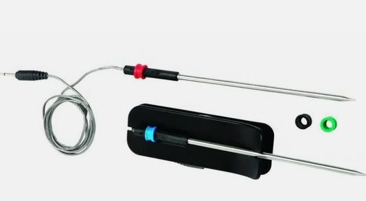 Mit diesen zwei zusätzlichen Temperaturfühler können Sie das ACCU-PROBE™ Bluetooth-Thermometer von Napoleon noch besser nutzen. Die Fühler können durch die bunten Ringe markiert werden und ermöglichen mit dem Thermometer das gleichzeitige Überwachen von vier Speisen auf Ihrem Grill. Das Set umfasst 2 Fühler, die in einer praktischen  Halterung geliefert werden sowie 2 farbige Plastikringe. Jede Sonde kann Temperaturen bis zu 300° C messen. Die Maße der Sonden betragen ca. B 4 x  H 2,5 x T 12,9 cm.