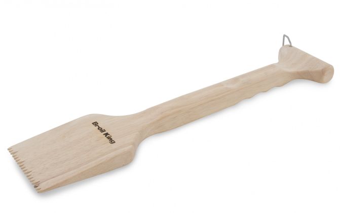 Der Holzschaber eignet sich sehr gut, um Grillroste oder Aluminiumdruckguss-Gehäuse zu säubern. Er ist mit einer Metall-Öse zum Aufhängen ausgestattet.