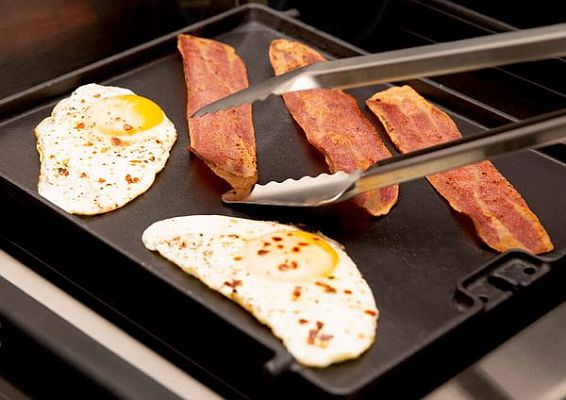 Die massive, gusseiserne Grillplatte wurde für Broil King Grills mit rechteckigem Rost entwickelt; sie passt genau auf die Modelle (ab 2021) mit Seitenkocher wie Imperial, Regal, Baron, Signet und Monarch. Die Platte ist beideitig verwendbar: Auf der geriffelten Seite enstehen bei Gerichten wie Bacon oder Burger-Patties die klassischen Brandings, während die glatte Seite sich ausgezeichnet für Fisch, Gemüse, Pancakes oder Spiegeleier eignet. Kreiern Sie damit eigene leckere Grillerlebnisse! Die Platte ist 31 x 26,7 cm groß, wiegt ca. 3,5 kg und ist mit strapazierfähiger, matter Porzellanbeschichtung ausgestattet. Mit dem praktischen Broil King-Rostheber (#60745), der als abnehmbarer Griff dient, kann sie mühelos angehoben und eingesetzt bzw. heruntergenommen werden.