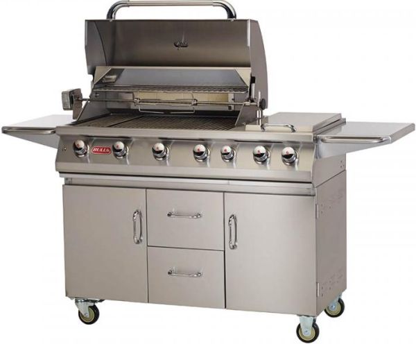 Bull BBQ Gasgrills sind äußerst hochwertige Markengrills; diese leistungsstarken Geräte erfreuen mit hoher Material- und Verarbeitungsqualität und durch ihre äußerst starken Brenner. Sie sind für das Grillen mit sehr hohen Temperaturen ausgelegt und auf Anfrage auch für den Erdgasbetrieb bestellbar. Der 7 Burner Premium-Grill verfügt über einen elektrischen 230 Volt-Drehspieß, auf dem sich nicht nur knusprige Hähnchen lecker zubereiten lassen. Probieren Sie darauf auch Schweinerollbraten (Porchetta) oder leckeres Gyros. Auch Gemüse ist selbstverständlich für die Zubereitung am Grillspieß prima geeignet!  Ein Bull BBQ Grill ist also nicht nur für das Grillen von Würstchen, Steaks oder Hamburgern da. Nutzen Sie ihn für viele unterschiedliche kreative Gerichte und verschiedene Zubereitungsarten.