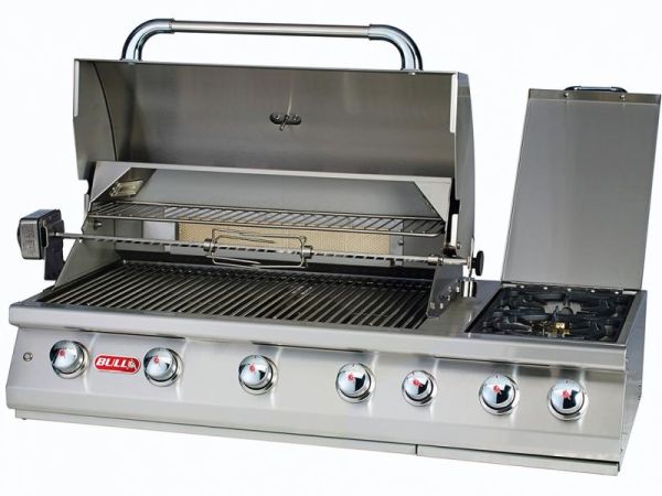 Bull BBQ Gasgrills sind hochwertige Marken-Gasgrill, die zum Einbau in die Außenküche geeignet sind. Diese leistungsstarken Geräte sind für das Grillen mit sehr hohen Temperaturen ausgelegt und auf Anfrage auch für den Erdgasbetrieb bestellbar. Der 7 Burner Premium-Grill verfügt über einen elektrischen 230 Volt-Drehspieß, auf dem sich nicht nur knusprige Hähnchen lecker zubereiten lassen. Probieren Sie auch Schweinerollbraten (Porchetta) oder leckeres Gyros. Auch Gemüse ist selbstverständlich für die Zubereitung am Grillspieß prima geeignet! Ein Bull BBQ Grill ist also nicht nur für das Grillen von Würstchen, Steaks oder Hamburgern da. Nutzen Sie ihn für viele unterschiedliche kreative Gerichte und verschiedene Zubereitungsarten.