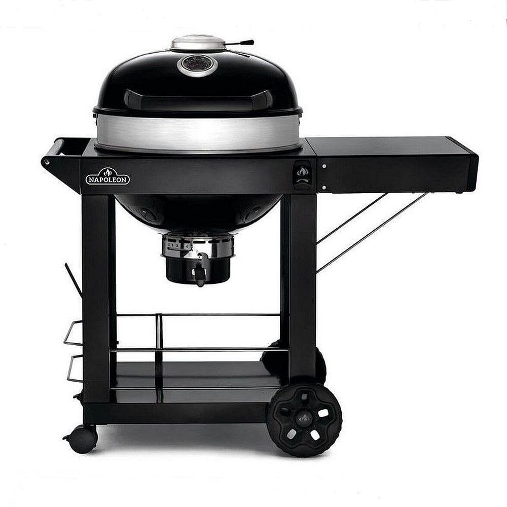 Holzkohlefans bekommen mit dem kompakten und mobilen Napoleon PRO Holzkohle Kugelgrill mit Wagen ein ausgewachsenes Grillerlebnis. Die Grillroste aus Gusseisen können für bequemes Grillen in drei verschiedenen Höhen eingestellt werden. Die Roste sind klappbar, sodass das Nachlegen von Holzkohle, das Nachfüllen von Wasserbehältern und das Einlegen von Räucherchips und -stücken erleichtert wird. Beim Grillen mit Holzkohle ist es wichtig, die Wärme über den Luftstrom zu kontrollieren. Der Schornstein schützt das Grillgut vor Wind und Regen. Das Vortex-Wärmemanagementsystem verbessert die Konvektion innerhalb des Grills für ein besseres Anbraten und Smoken sowie eine effizientere Nutzung des Brennstoffs. Der Erweiterungsring aus Edelstahl ist für Drehspießgerichte geeignet und verfügt über Türen, die die Öffnungen für den Spieß abdecken. Integrierte Türen für Temperaturfühler sorgen dafür, dass Sie den Garvorgang genau steuern können. Mit dem modularen Stauraum, den Werkzeughaken und der integrierten Grillhalterung haben Sie alles, was Sie brauchen, immer griffbereit.